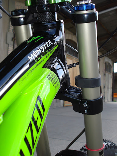 le but de cette modification étant de descendre au plus pas le poste de pilotage en gardant la même hauteur de colonne (120mm) et en y intégrant les roulement en interne, pour ceci Specialized à simplement integré la colonne du demo7 au demo 8.