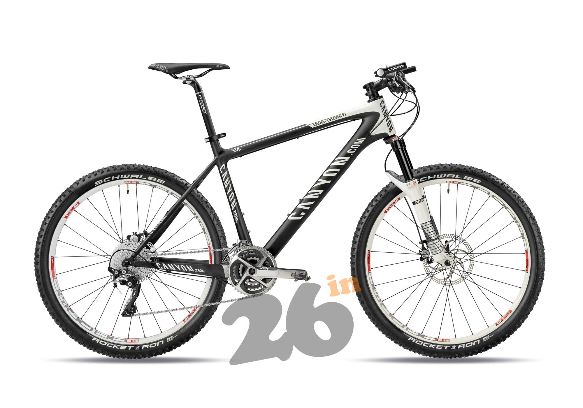 "Avec le Grand Canyon CF, Canyon a réussi une symbiose parfaite entre rigidité et confort." Tel était le verdict de BIKE 12/09. Un vélo de rêve qui répond aux plus hautes exigences. Une gamme d’équipements optimisée jusqu’aux moindres détails. Ce qui est frappant, c'est le look offert par la nouvelle fourche DT Swiss XR100 ainsi que par les éprouvées roues DT Swiss XR1450 avec leur système de roue libre Ratchet pour un meilleur rendement lorsqu'on les associe aux couleurs noir et blanches du cadre. La fourche impressionne par son haut niveau de rigidité grâce a la Torsion Box alors que les roues permettent de réduire les masses en mouvement. Le nouveau groupe XTR combine un poids réduit et un fonctionnement impressionnant.