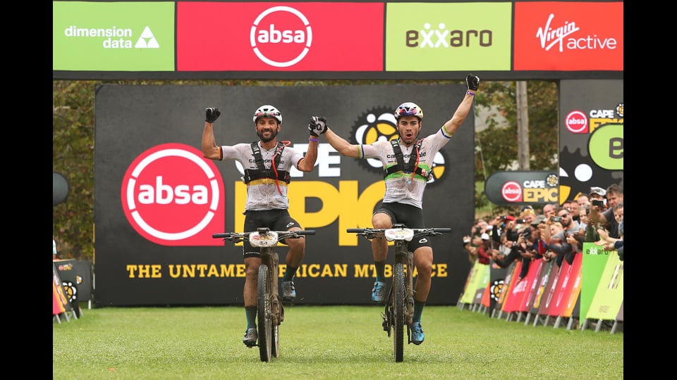 It’s not over until it’s over. A disastrous rear-wheel puncture saw Scott-SRAM MTB-Racing concede the Yellow Jerseys to Cannondale Factory Racing on Wednesday, proving once again that the Absa Cape Epic is won only when you cross the finish line at Val de Vie Estate during the Grand Finale. Cannondale Factory Racing put on a tactical clinic for the rest of the field on Wednesday’s brutal 107-kilometre Stage 3 and ended up not only taking the stage win, but also moved firmly into first on the overall GC. Henrique Avancini and Manuel Fumic now have a 2:41 buffer over Scott-SRAM MTB-Racing, with the BULLS Heroes outfit of Urs Huber and Simon Stiebjahn in third, 7:45 adrift. Four-time race winner and current Absa Cape Epic Women’s category leader, Annika Langvad’s mantra for the gruelling eight-day event has always been: “Never to take anything for granted until you cross the finish line”. On Wednesday her conservative approach was once again vindicated as the second-placed team of Ariane Lüthi and Maja Wloszczowska (Kross-Spur Racing) were pretty much blown out of contention by punctures. In the dice for the minor placings, Candice Lill and Adelheid Morath (Summit Fin), who were with Lüthi when she had her first puncture, have moved up to second overall after finishing the 107km ride six minutes behind the leaders.