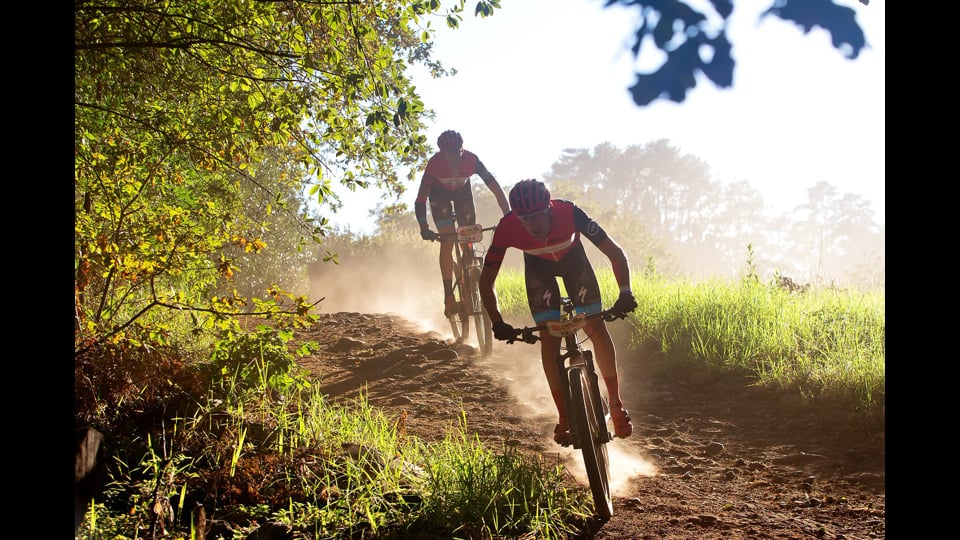 Meijato and Johnny Cattaneo seized the initiative after Trek Selle San Marco suffered a disastrous mechanical, to win the brutal 89-kilometre challenge around Stellenbosch, in a time of 03:49:21. "Today was fantastic for us,” Cattaneo said afterward. “We had some good luck and then we tried to push hard over the last 20-kilometres,” he commented. The ‘luck’ he was referring to was indeed the puncture Trek Selle San Marco (who led for almost two-thirds of the race) suffered after Porro crashed at 65kms. They were forced to stop to repair their mechanical which saw the chase bunch of Scott-SRAM MTB-Racing and 7C CBZ WILIER overtake them.